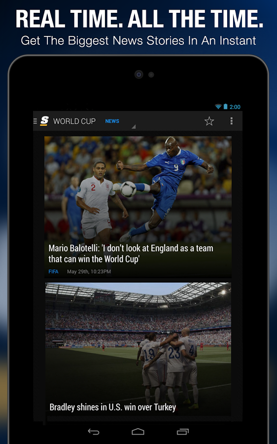 هو منزلك لكأس العالم 2014 وبعض الدوريات الاخرى وجميع الألعاب الرياضية الكبرى! والحوصل علىوالإحصائيات والأخبار والتنبيهات وأكثر من ذلك بكثير لأجهزة الايفون والاندرويد .